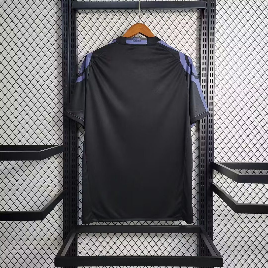 The new Real Madrid 2016-17 third shirt is mostly black. with white club and sponsor
