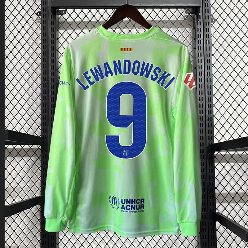 - 2024-25 Barcelona GAVI #6 LEWANDOWSKI #9 Long Sleeve Third Away Soccer Jersey Without Spofity Text
